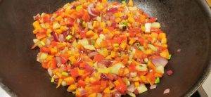 Curatati legumele si taiati-le bucati mici, patratele de jumatate de centimetru